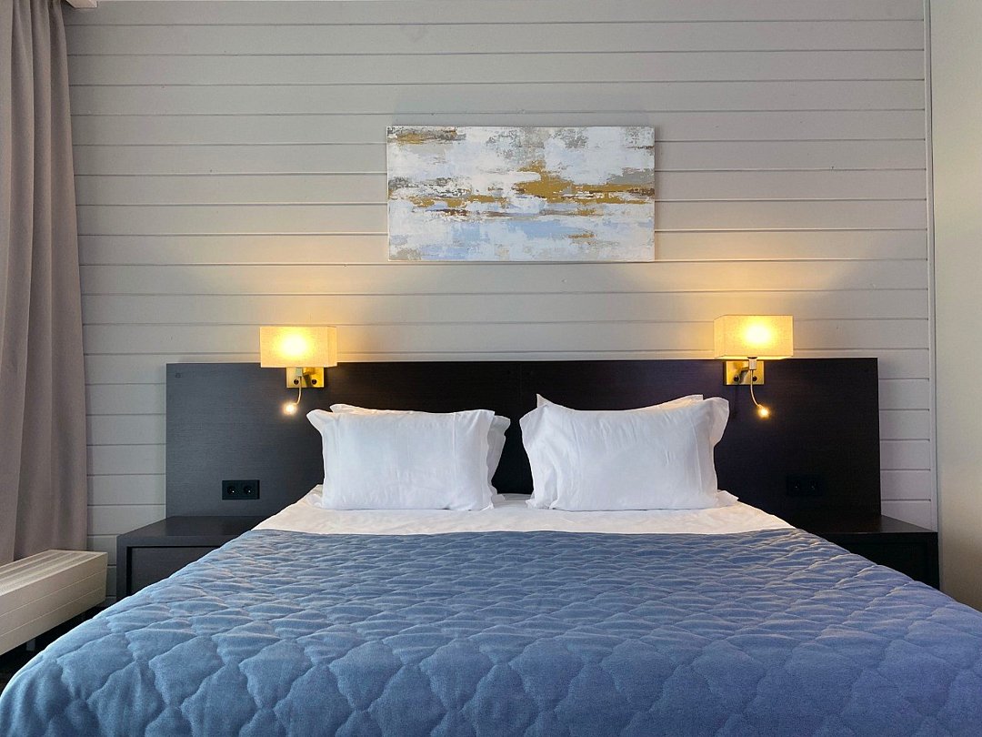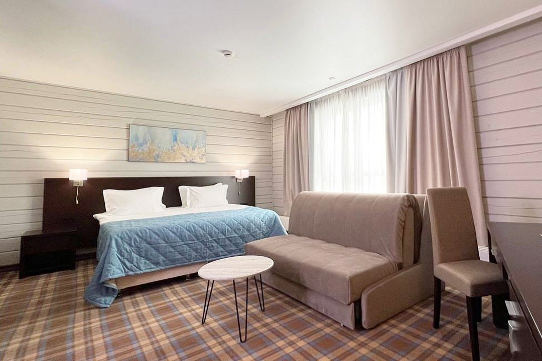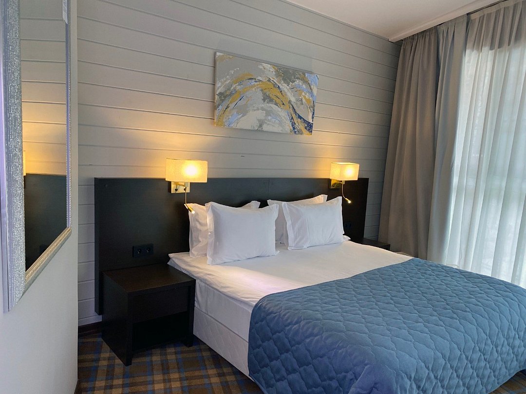 Номера оборудованы сейфом, мини-баром, халатами и тапочками, феном, набором СПА-косметики. Номер дополнительно оборудован спальным местом для собаки мелкой породы весом до 8 кг, двумя мисками и гигиеническими принадлежностями.