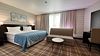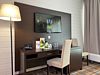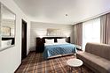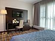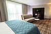 В номерах категории Deluxe Suite + отсутствует межкомнатная дверь, соединяющая их с соседними номерами, что приводит к улучшению показателей звукоизоляции. Номера оборудованы сейфом, мини-баром, халатами и тапочками, феном, набором СПА-косметики.