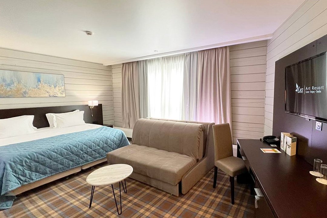 В четырехместном однокомнатном номере площадью 36 м.кв Classic Suite+ продумана каждая деталь. Здесь постарались учесть все бытовые мелочи и создать уютную атмосферу
