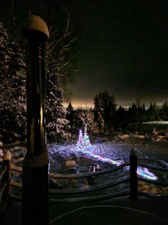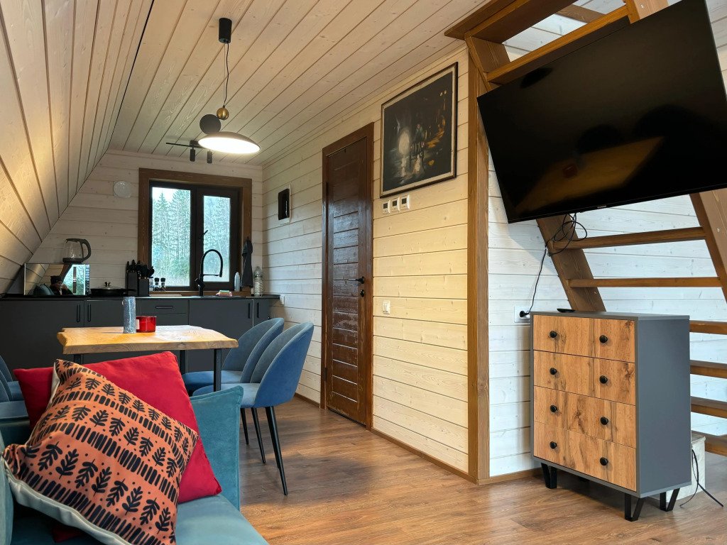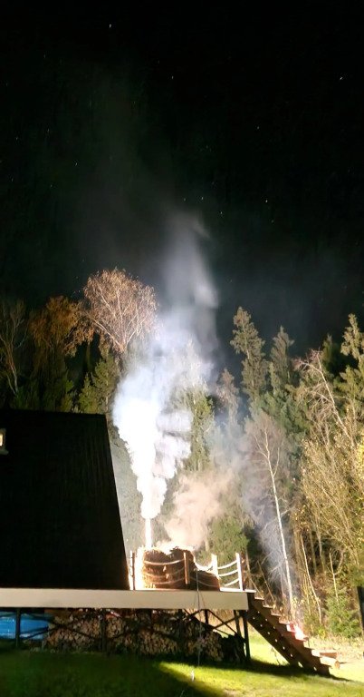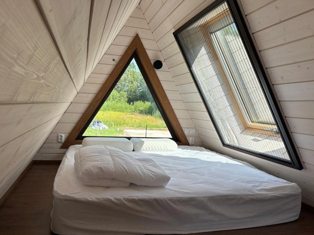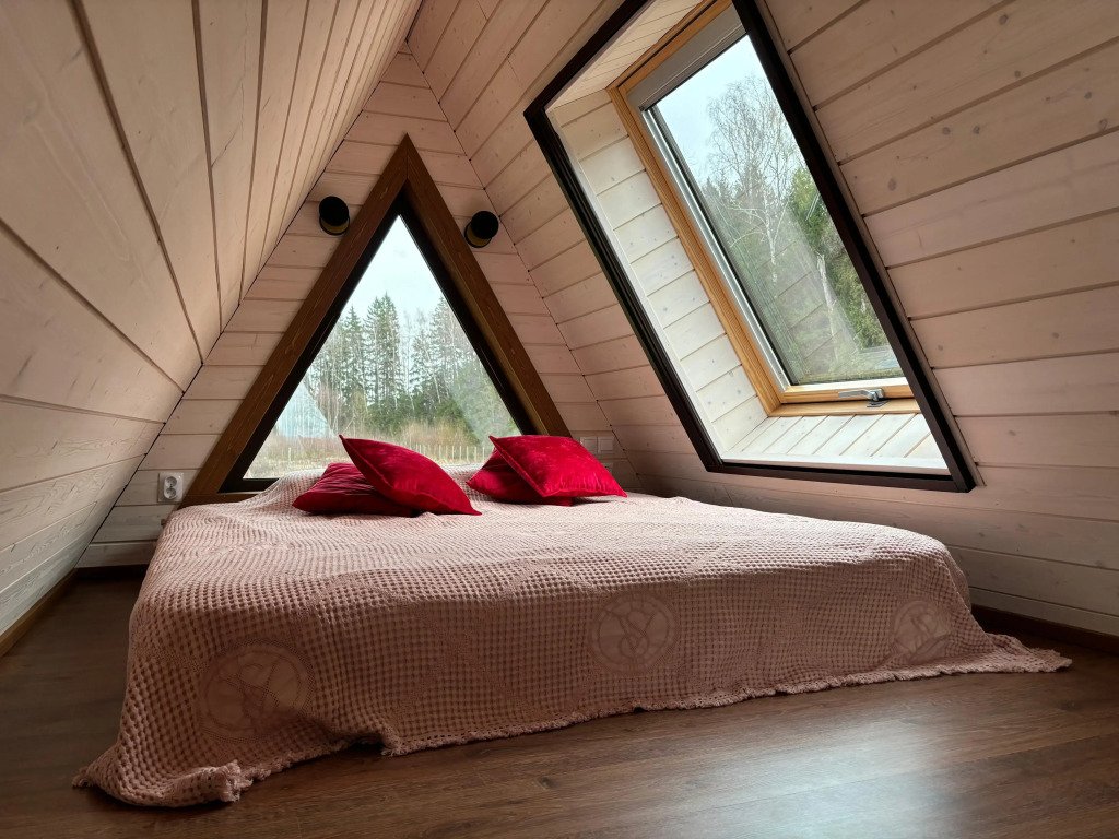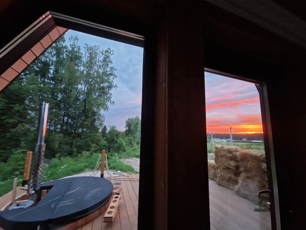 Частный дом с собственной сауной и купелью вмещает двух взрослых и 2-3 детей. Дом расположен на частной территории 60 соток, имеет мансардные окна. Дом оснащён необходимым для проживания. В кухне есть индукционная плита на 2 конфорки, чайник, холодильник, комплект кухонной утвари, микроволновая печь.