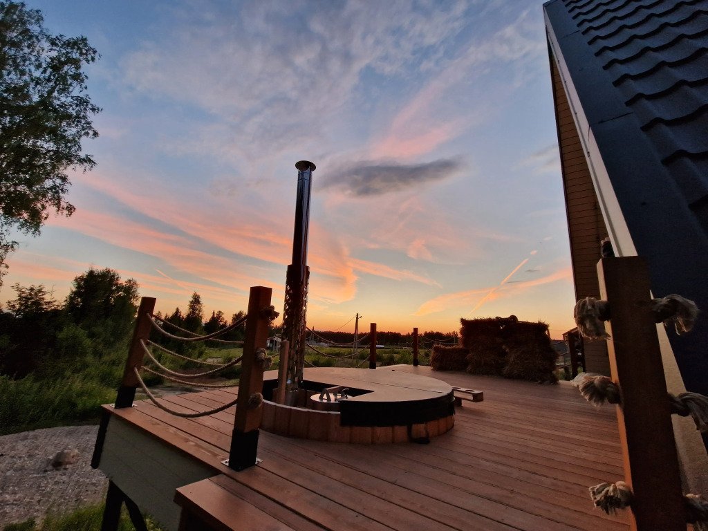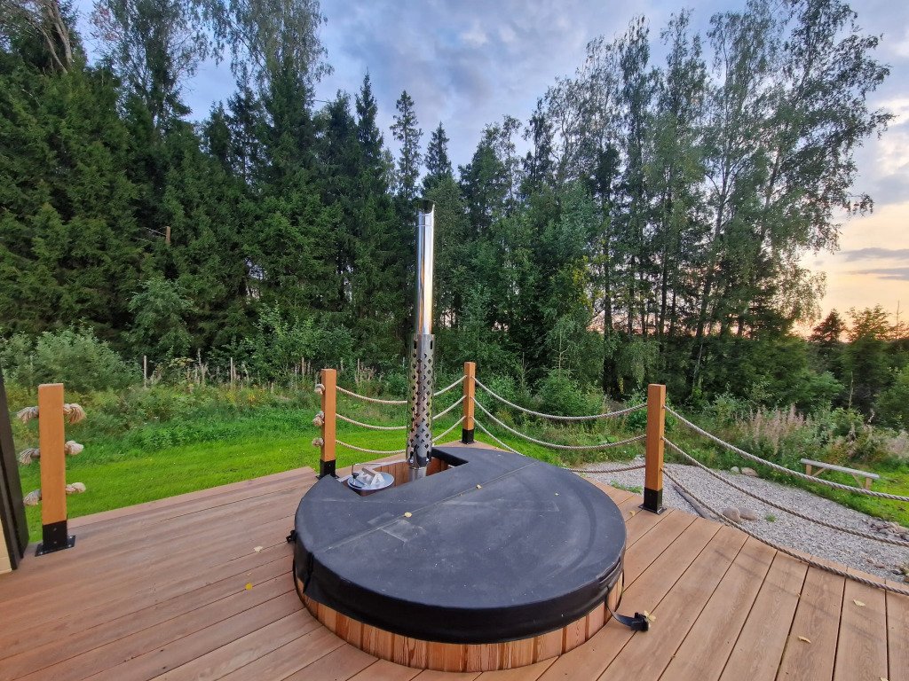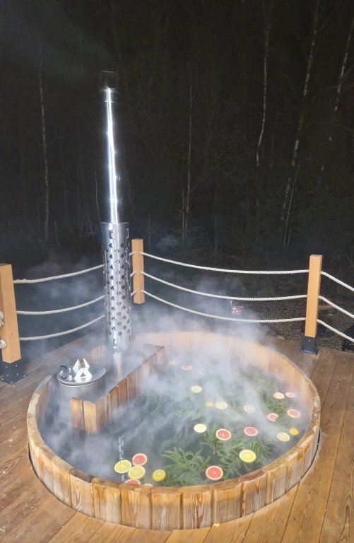 Внутри дома есть электрическая сауна на 2 человек, на террасе баня фурако (купель). На территории имеются мангал, костровая зона. В распоряжении гостей также стол для пинг-понга, футбольное поле, волейбольная и баскетбольная площадки, батут. Зимой рельеф позволяет иметь собственную трассу для ватрушек и ледянок, беговые лыжи.