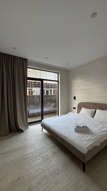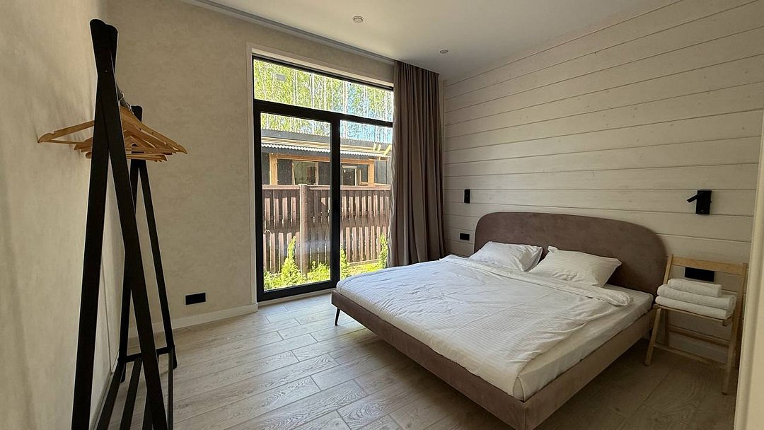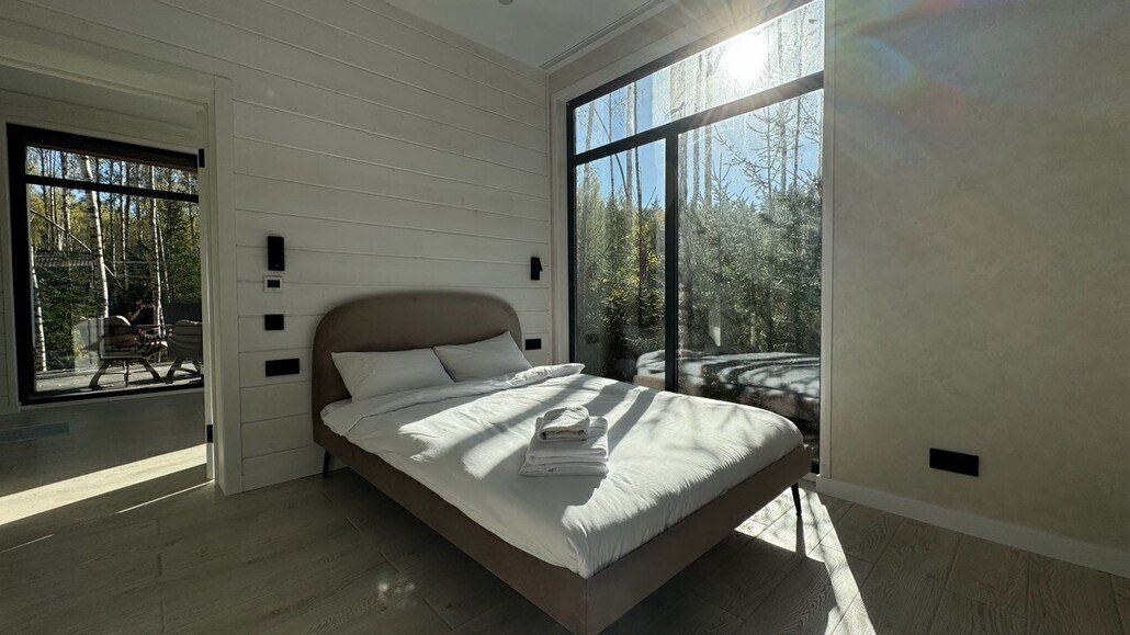 Дом «Лесной с сауной и чаном» уютно расположился в живописном лесу, где царит атмосфера уединения и единения с природой. В доме есть три отдельные спальни с комфортабельными двуспальными кроватями, а просторная кухня-гостиная оснащена всем необходимым для приятного проживания. Здесь вы найдете диван-кровать, Wi-Fi, Smart-TV, посудомоечную машину и теплый пол. Каждое утро начинается с наслаждения уютной обстановкой и чашкой ароматного кофе.