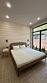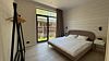 Внутреннее пространство включает три изолированные спальни с двуспальными кроватями (две размером 180×200 и одна размером 140×200), кухню-гостиную с диваном-кроватью, просторную террасу, Wi-Fi, Smart-TV, духовку, кофемашину, стеклокерамическую варочную панель, чайник, холодильник, СВЧ, посудомоечную машину и тёплый пол по всему дому.
