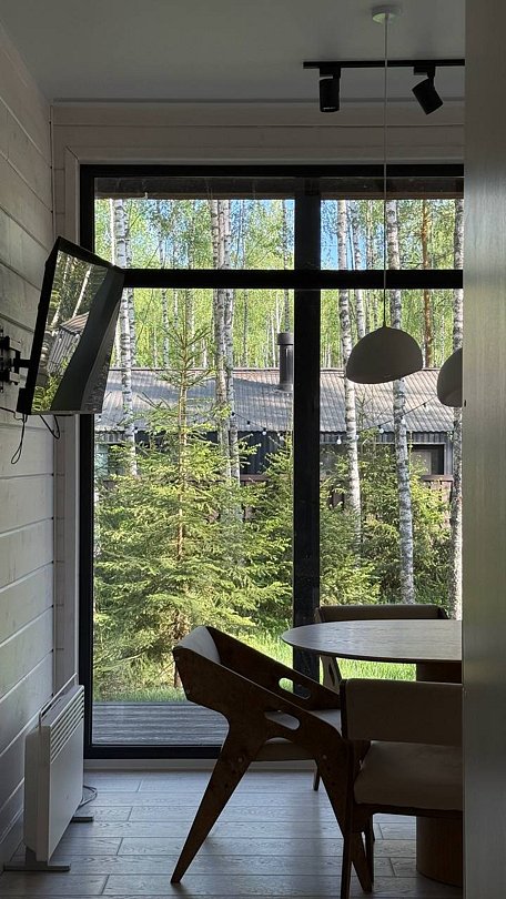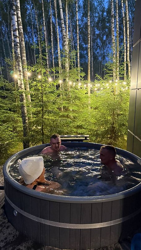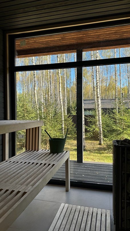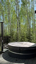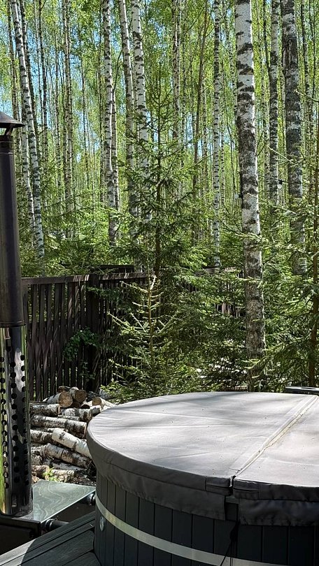 Панорамная сауна включена в стоимость проживания, а использование горячего чана обсуждается отдельно.