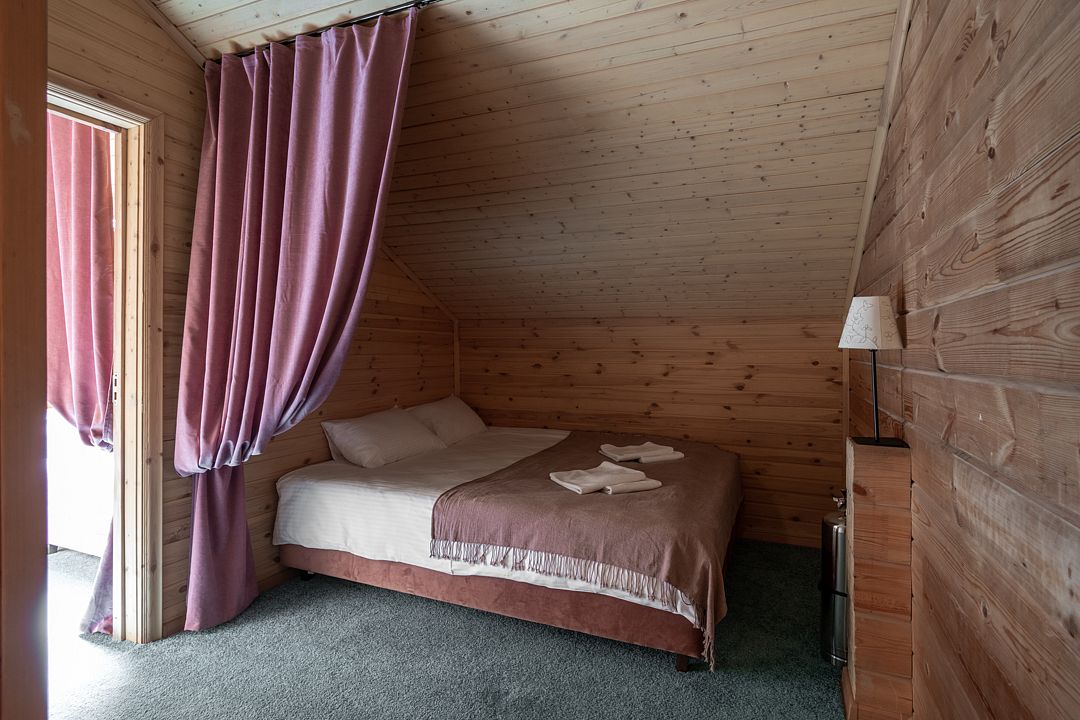 Двухэтажный премиум коттедж Lesnoy Villa с шестью спальнями (14 спальных мест). И четыре современных двухместных бунгало, оснащённые всем необходимым для комфортного проживания (кондиционер, ТВ, сан узел).