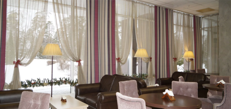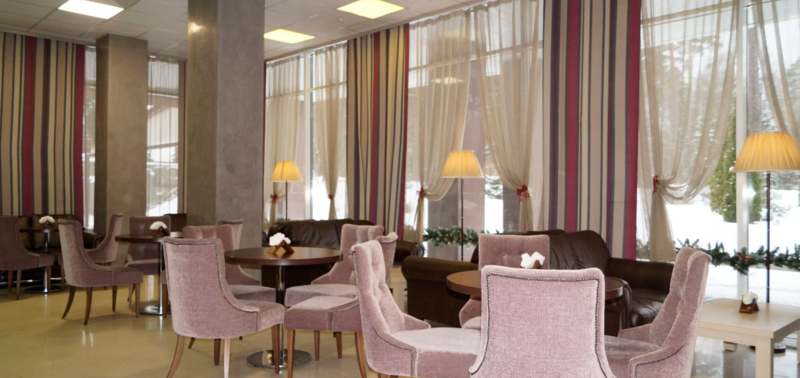 Ресторан «Лесные дали». Завтрак (с 09:00 до 11:00) — 480 ₽/взрослый, 360 ₽/ребенок, обед (с 13:30 до 15:00) — 840 ₽/взрослый, 552 ₽/ребенок, ужин (с 18:20 до 19:45) — 600 ₽/взрослый, 384 ₽/ребенок.