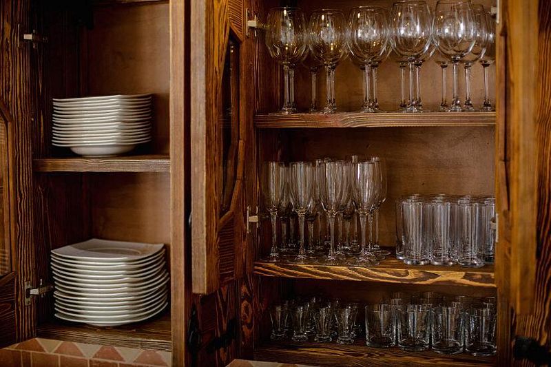 - Просторная кухня/гостиная со всем необходимым набором посуды и бытовой техники Bosch (холодильник, плита, микроволновка, чайник, посудомойка), трапезный стол и стулья на 16 человек (комфортное размещение за столом).