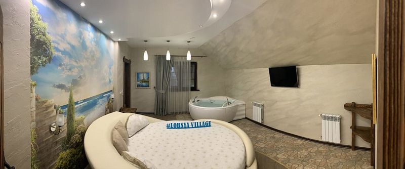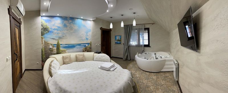 - Первая спальня оборудована круглой кроватью, гидромассажной ванной Jacuzzi, Smart TV Samsung 42 дюйма, кондиционер, туалетной комнатой.