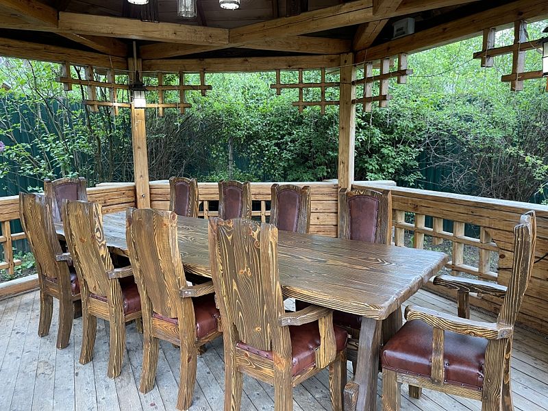 Лучшее место для застолья в хорошую погоду. В пруду плавают очаровательные рыбки Кои.