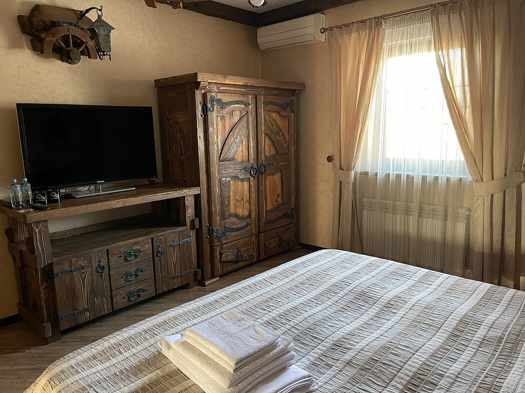 - Огромная деревянная кровать размера Super King Size, с отдельным с/у и кондиционером, Smart TV