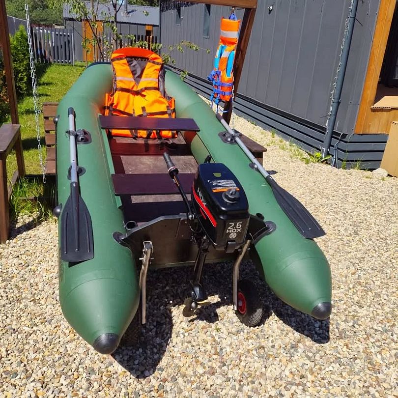 Вы можете взять в аренду лодку. Лодка 2 местная, с мотором 2.6, и спас жилетами. Транцевые колеса для удобной транспортировки до воды и обратно, держатели для спиннингов. Отличный вариант для прогулок по воде и рыбалки.