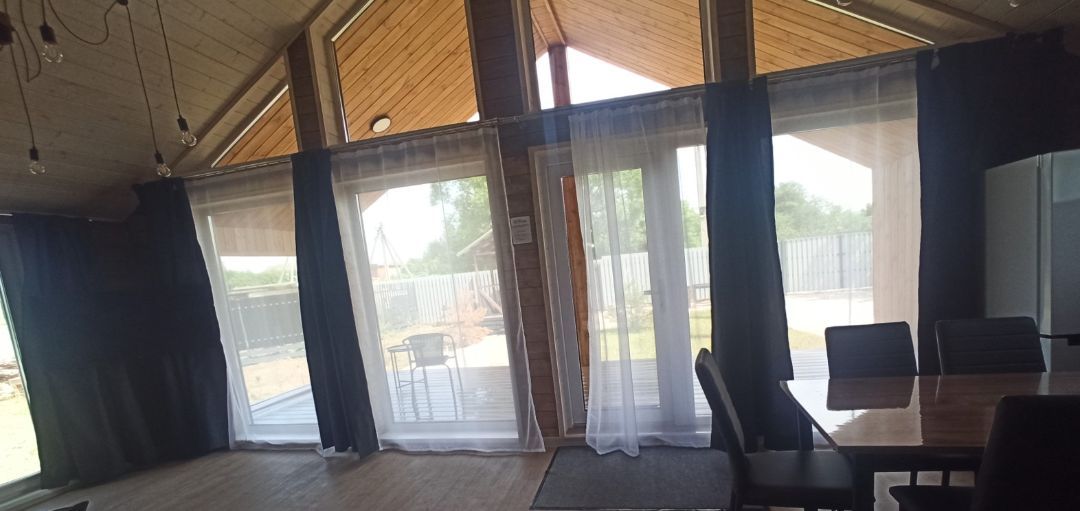 - Просторную кухню-гостиную: с панорамным остеклением и диваном со спальным местом 115x180