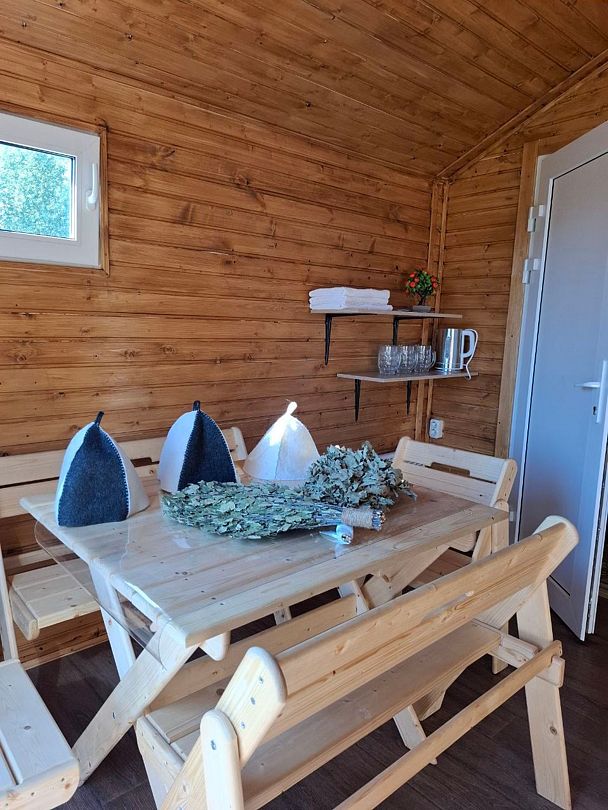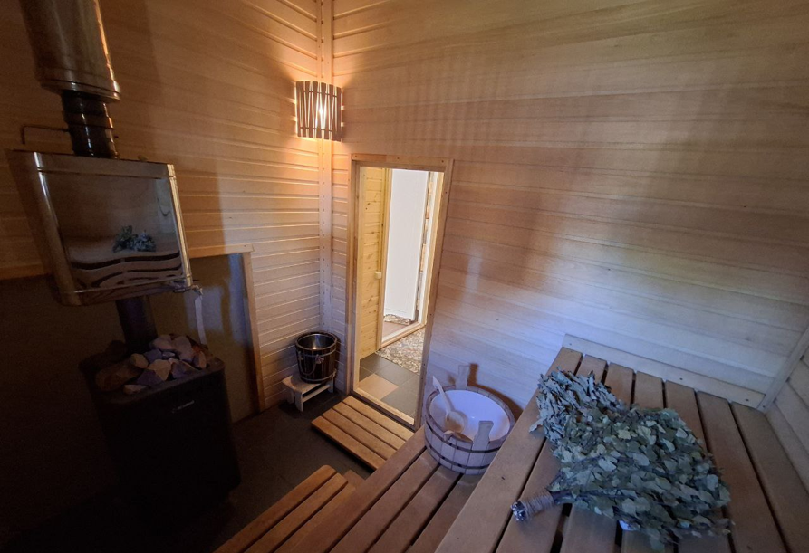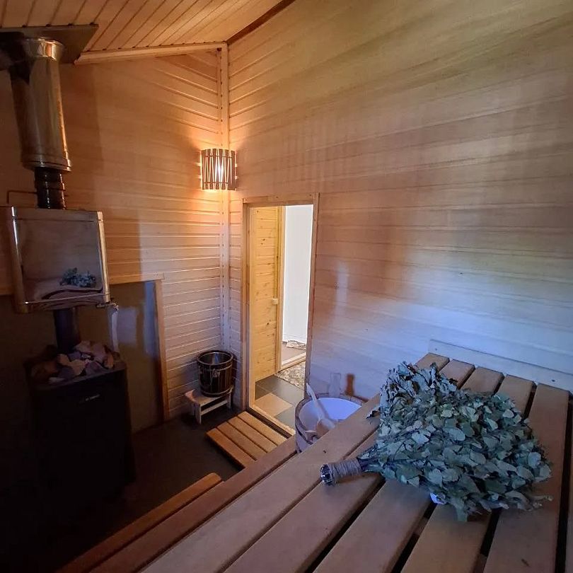 Инфраструктура: зона отдыха, обливное ведро, душ, дубовые веники, березовые веникиПросторная баня на дровах с комнатой отдыха.