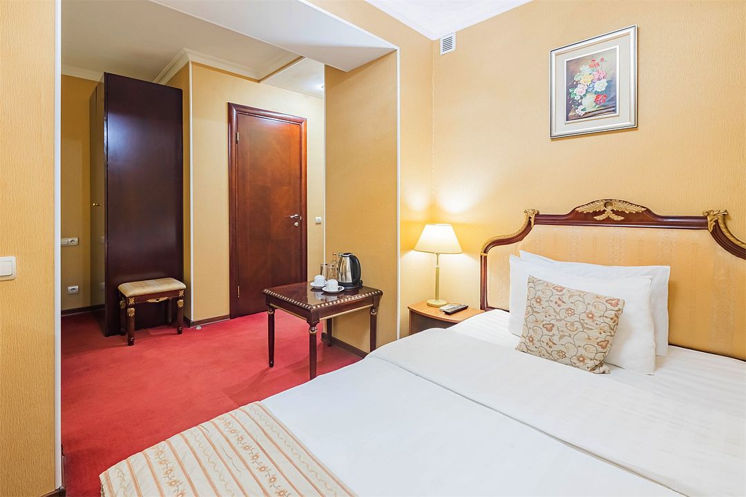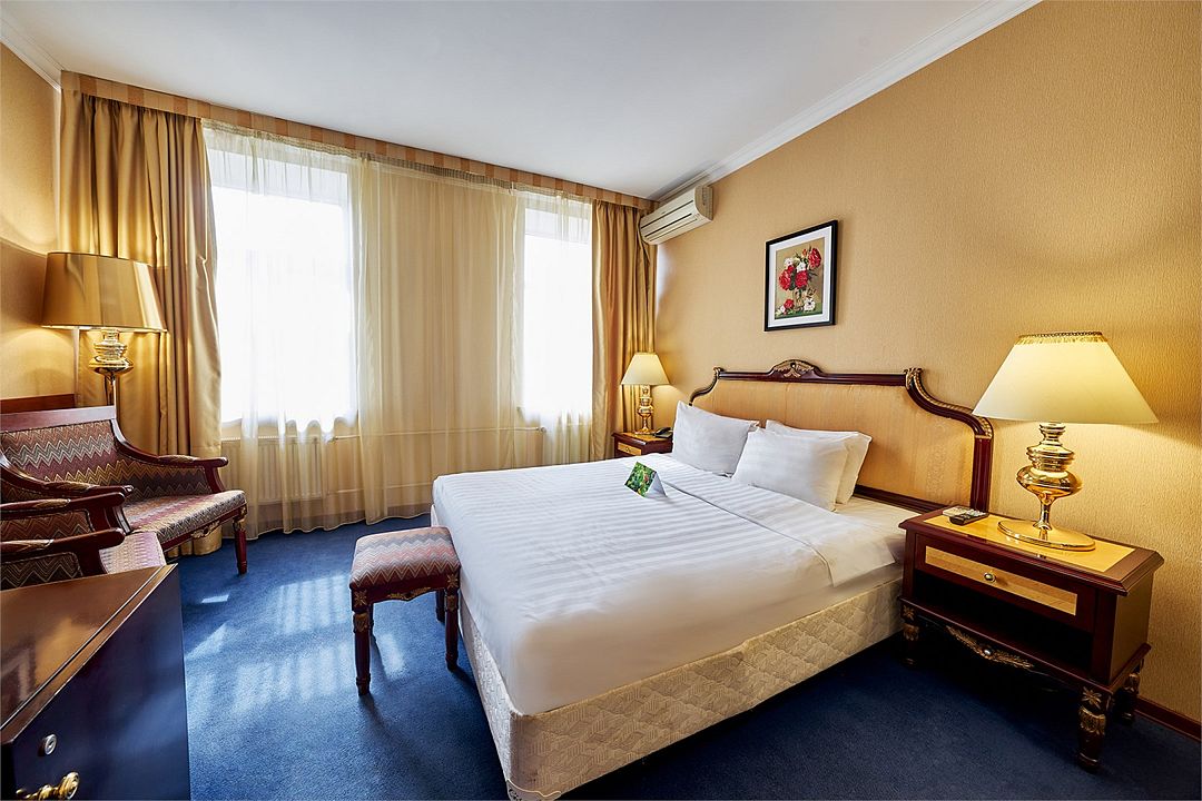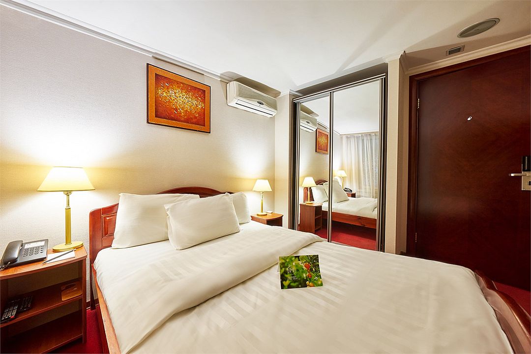 2 взрослых на основном местеБез питанияРаннее бронирование за 30 днейПодробнееВ проживание включено: питьевая бутилированная вода, чай и кофе ежедневно в номере, бесплатный Wi-Fi, бесплатный ранний заезд с 12:00 при наличии свободных мест*, доставка деловой прессы в номер, возможность посещения бассейна (бассейн находится вне отеля).