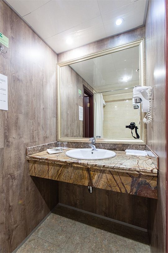 Также номера укомплектованы мини-баром, чайной станцией, телефоном, феном, гладильными принадлежностями. Окна номеров категории «Бюджет» выходят в уютный атриум отеля либо в коридор — вашему отдыху не помешает шум!