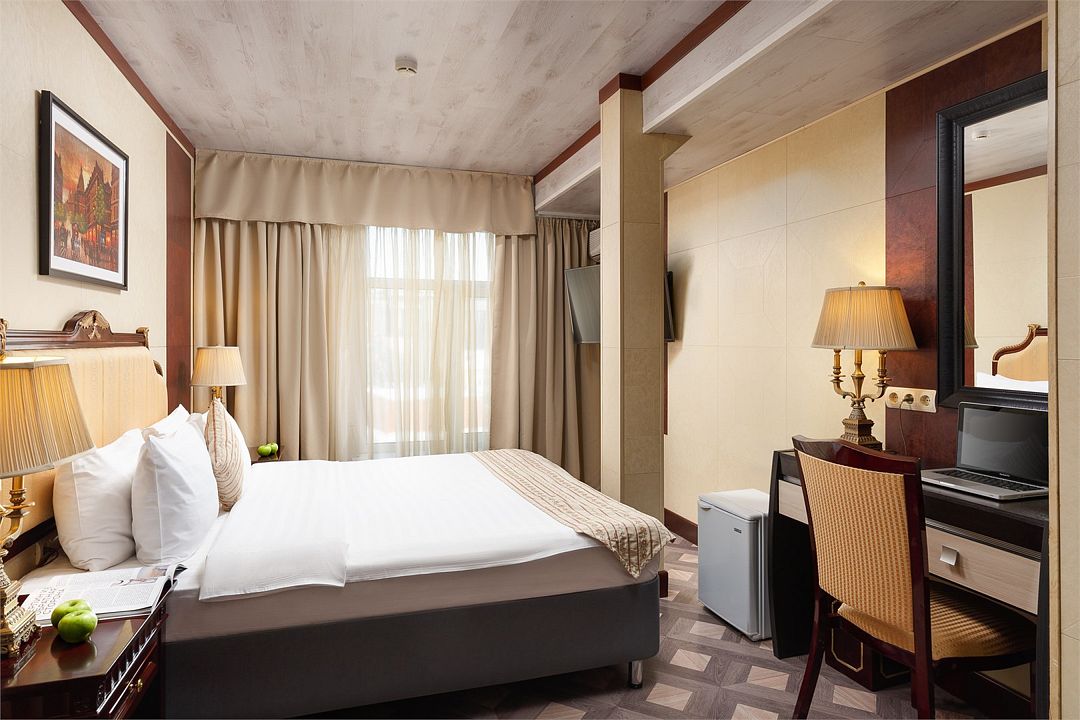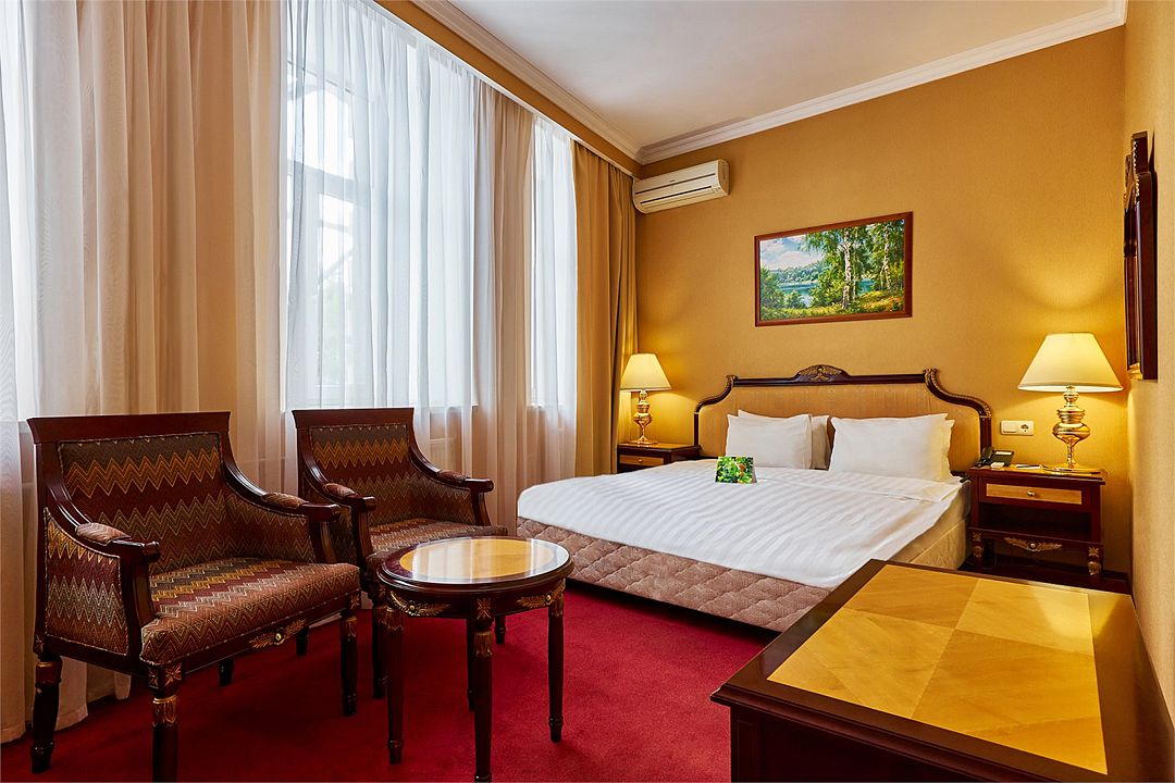 Путешествуете вдвоем? Один из лучших вариантов размещения — комфортный двухместный номер категории «улучшенный». В компактном номере нашлось место не только для комфортной двуспальной кровати, но и для полноценной рабочей зоны с удобным столом и высокоскоростным беспроводным интернетом.