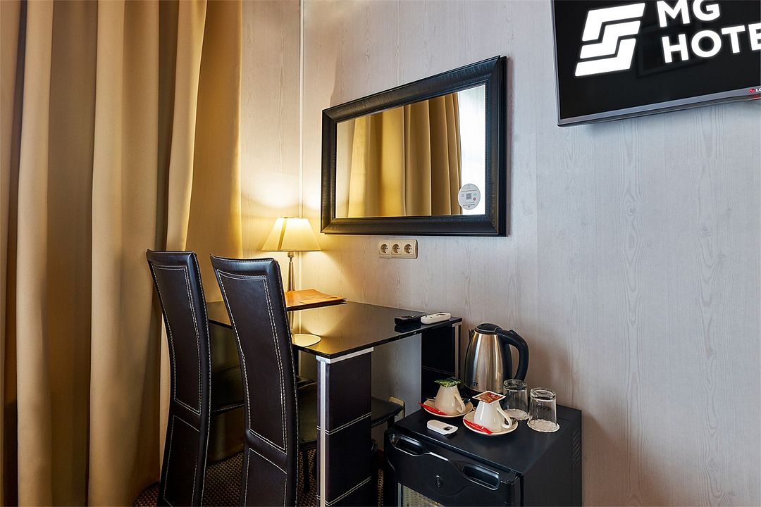 Современный лаконичный дизайн и комфортная мебель позволили сделать номер уютным и наполнить его светом. Несмотря на демократичную цену на размещение, номер оснащен по самым высоким стандартам.