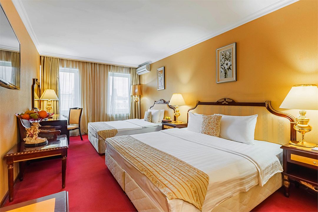 Две кровати размером 140х200 см гарантируют великолепный сон, а современная система климат-контроля обеспечит оптимальную температуру и максимальный уют в номере. В номере есть удобный письменный стол и высокоскоростной Wi-Fi, а также индивидуальный сейф для ценных вещей и документов.