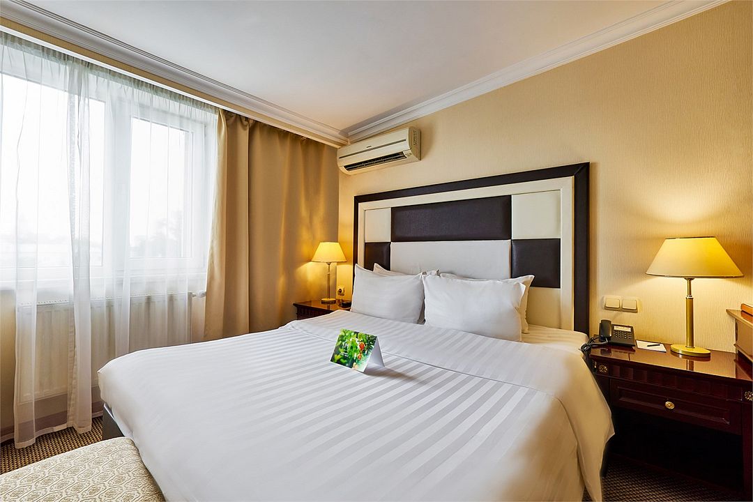 Двухместный номер категории «Стандарт» с одной двуспальной (160х200, либо 180х200) или двумя раздельными кроватями (90х200, либо 120х200) — прекрасный вариант для деловой поездки или отдыха пары.