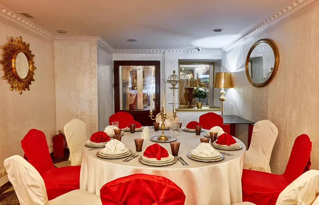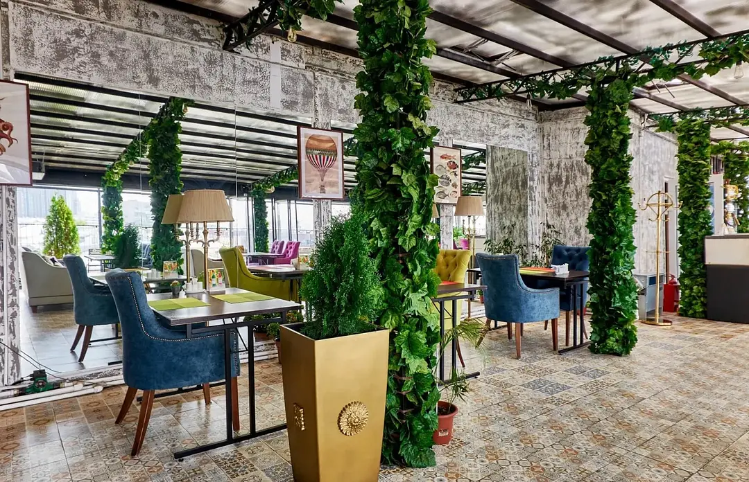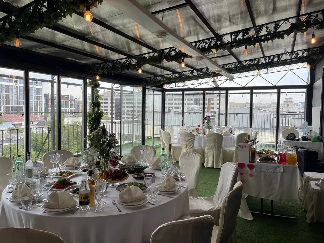 Банкетный зал «Времена Года», расположенный на восьмом этаже отеля «Мандарин», поражает гостей роскошью интерьера и панорамным видом на Москву. Просторный зал площадью сто шестьдесят квадратных метров украшен зеленым декором и изысканными цветами, создавая неповторимую атмосферу для любых значимых событий: свадеб, юбилеев, корпоративов и семейных торжеств.