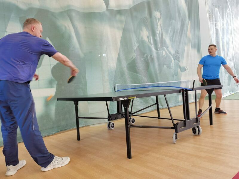 Площадь спортивного игрового зала 18х30 м, высота 6 м. В зале проводятся игры в волейбол, баскетбол, бадминтон. По периметру зала установлены столы для игры в настольный теннис (3 стола).