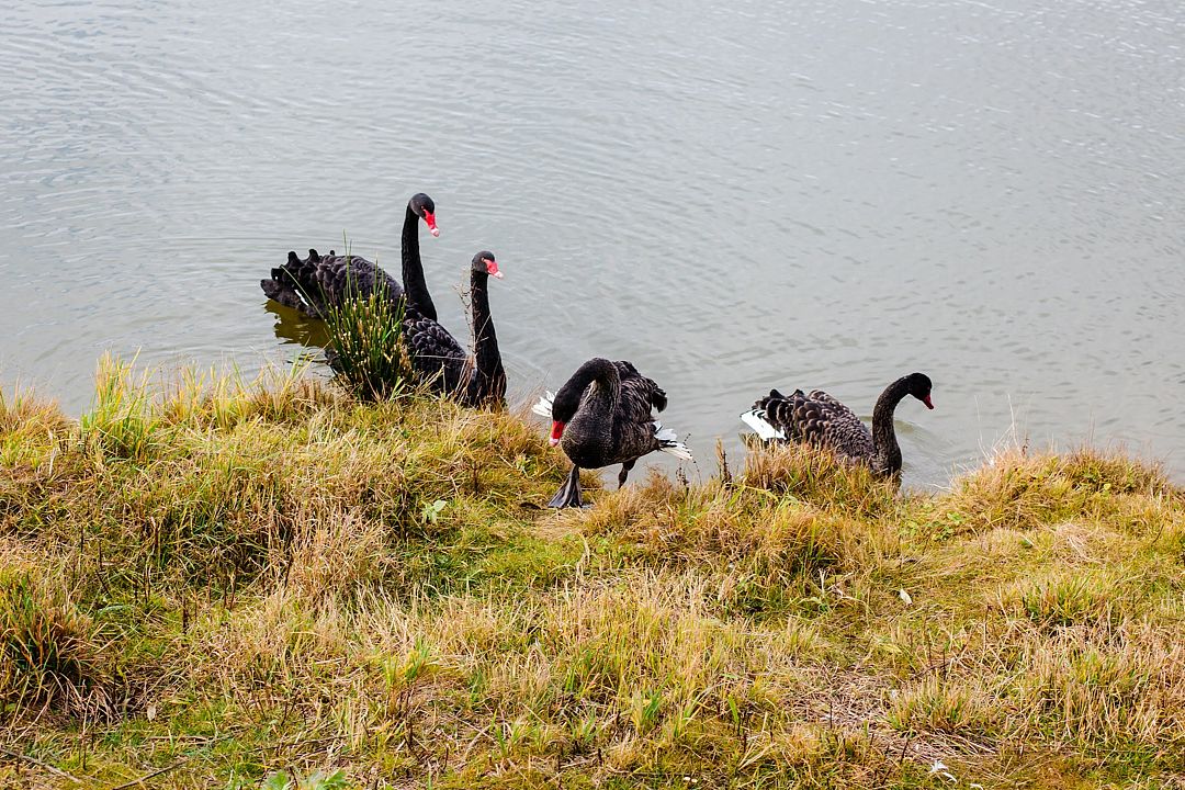 В открытых просторных загонах пасутся козы, коровы, овцы, лошади, пони и дружелюбный ослик. Есть отдельная большая утиная ферма и пруд с черными лебедями.