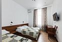 Современный и уютный номер, предназначенный для размещения одного или двух человек. Возможное оснащение номера: стол, стул, бра, платяной шкаф, две прикроватных тумбочки, подставка для багажа, зеркало в полный рост, мини-холодильник, сейф, телевизор.