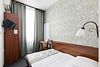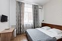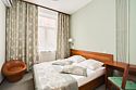 Современный и уютный номер, предназначенный для размещения одного или двух человек. Возможное оснащение номера: стол, стул, бра, платяной шкаф, две прикроватные тумбочки, подставка для багажа, зеркало в полный рост, мини-холодильник, сейф, телевизор.