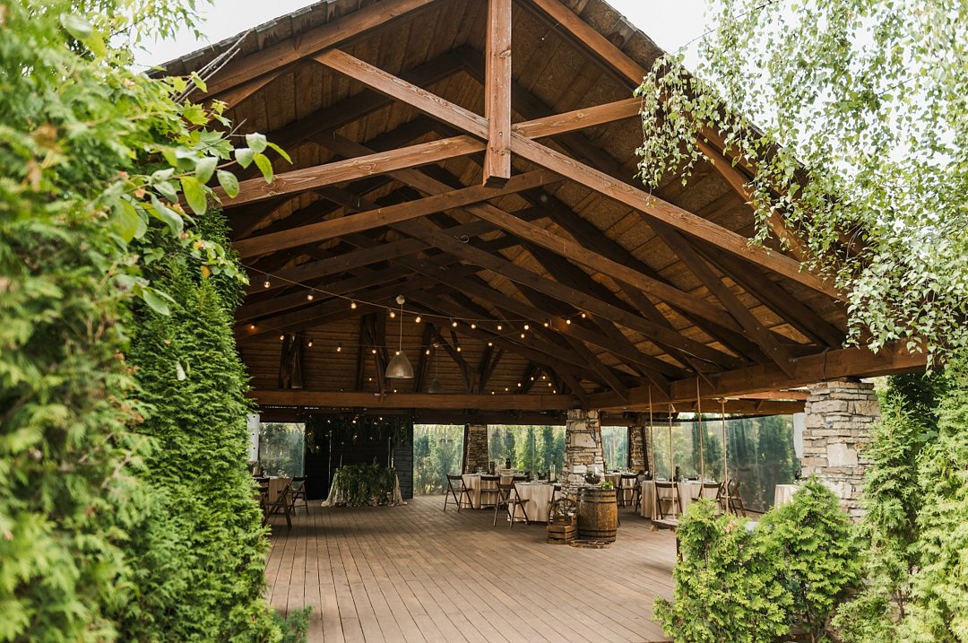 На территории вы найдёте не только прекрасные локации, но и полное сопровождение вашего мероприятия: просторный банкетный зал с круглыми каменными сводами и «старинными» деталями интерьера, вмещающий до 40 человек, профессиональное сервисное обслуживание, живописные уголки для свадебной фотосессии, просторную веранду и фуршетную беседку, зону барбекю и мини-пляж у собственного озера.