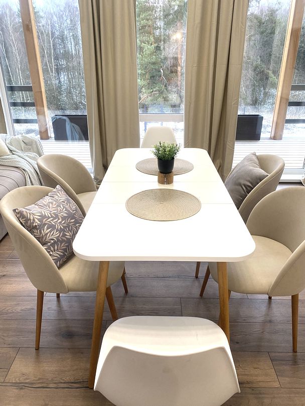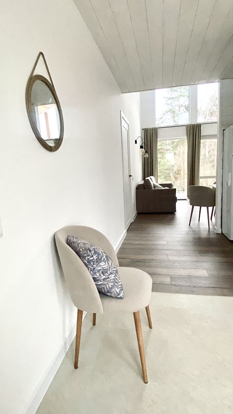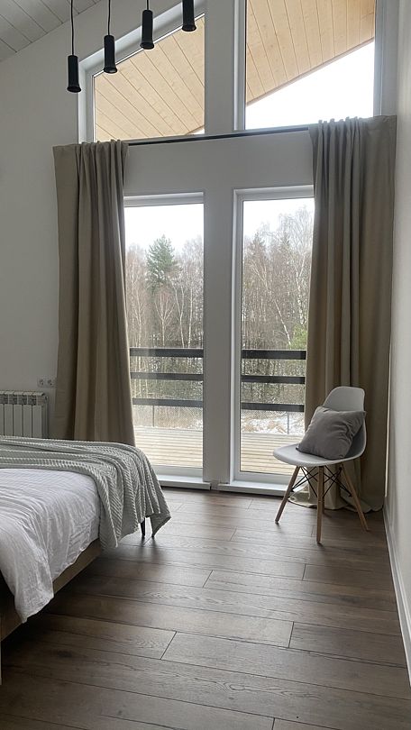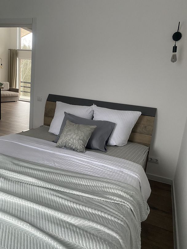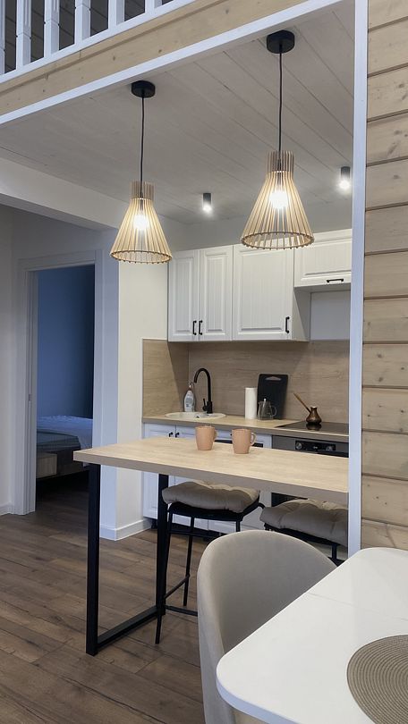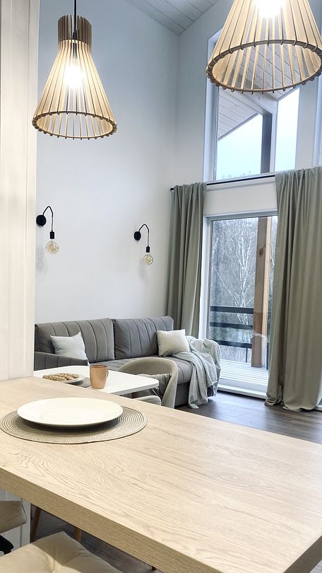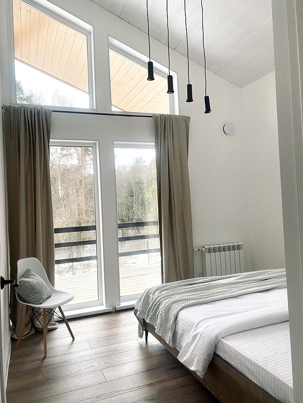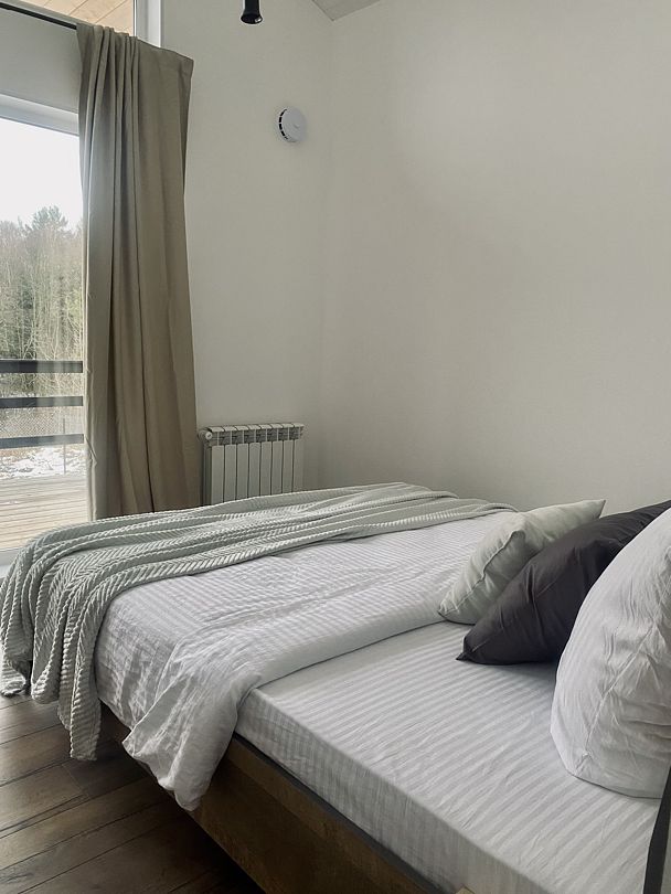 В уютном доме есть 3 отдельные спальни с двуспальными кроватями, просторная кухня-гостиная с посудомоечной машиной и полным комплектом посуды, уютная антресоль с лесным видом, стильная и удобная мебель, полотенца, умная колонка Алиса и телевизор со Smart-TV.