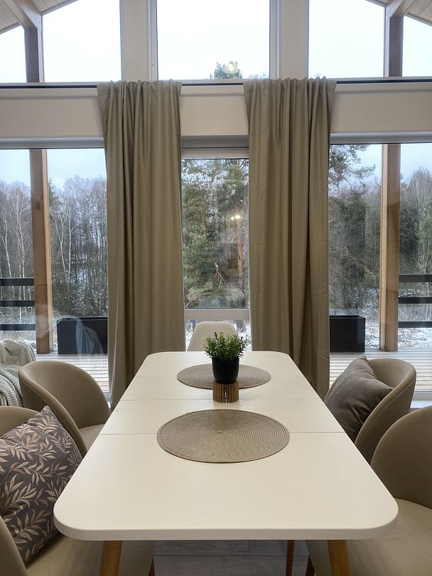На участке сможете полюбоваться лесом с солнечной террасы, а также приготовить блюда на барбекю с мангалом. Есть детская площадка.