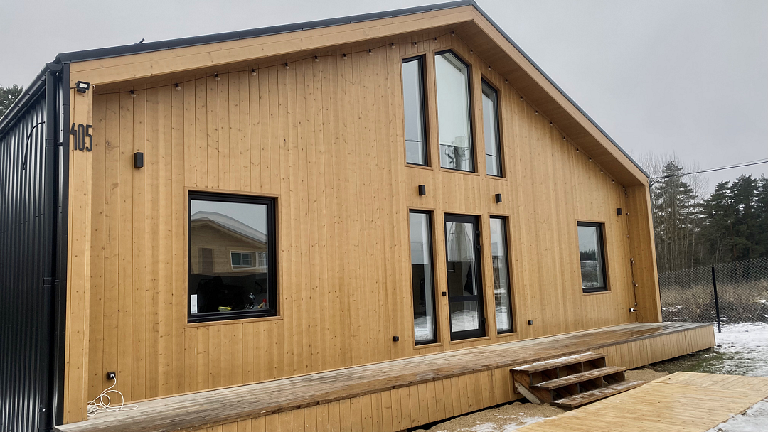Загородный дом «МирраДом» находится в 39 километрах от МКАД, в деревне Ивановка, Домодедово.