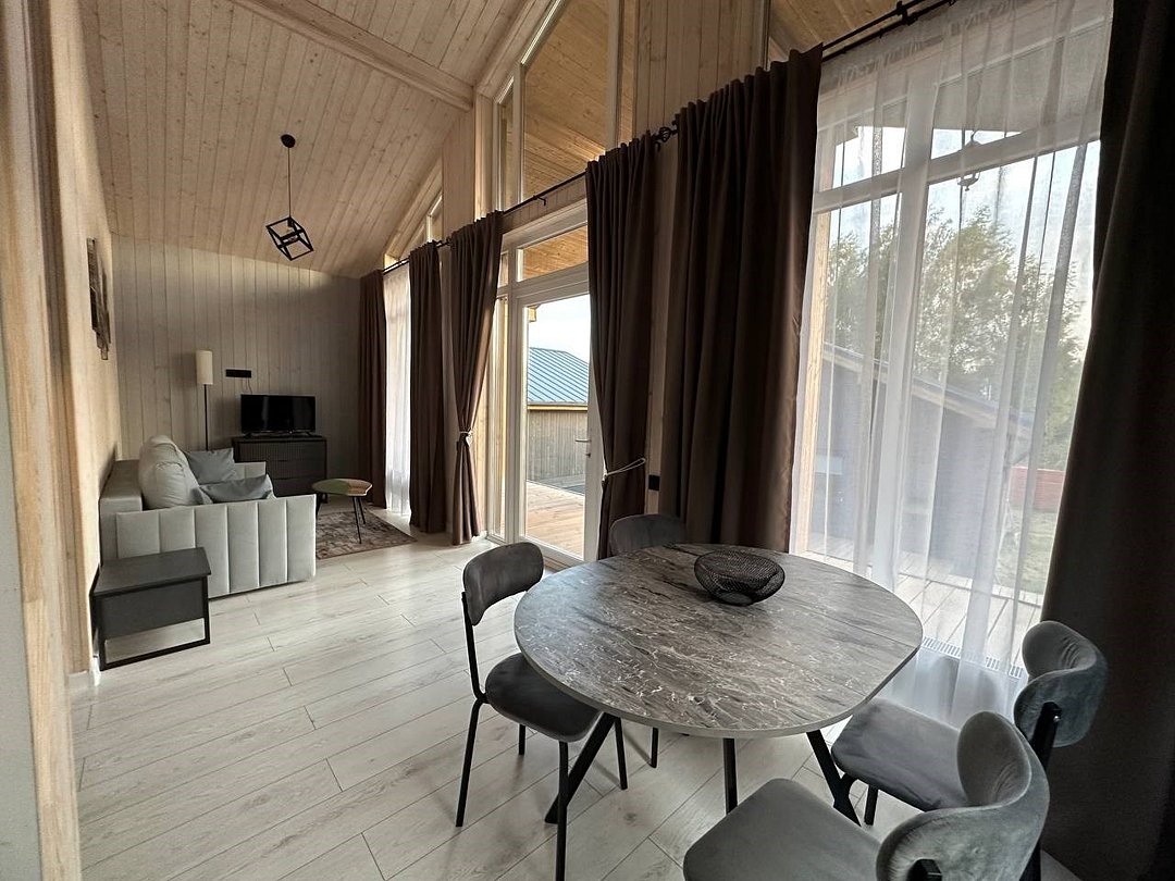 Wi-Fi, холодильник, фен, плита для приготовления пищи, ванная комната, санузел, теплый пол, терраса, двуспальная кровать, чайник, туалетные средства, панорамные окна, диван-кровать, телевизор со Smart TV, теплые полы, номер для некурящих, окна от пола до потолка, можно с питомцамиВ доме