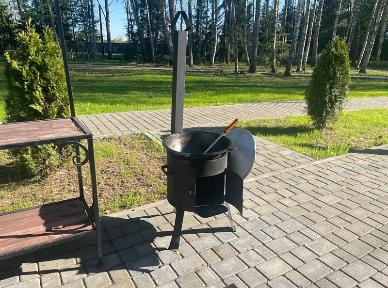 Комплект включает в себя казан 12 литров, печь, а также шумовку. Сдается на сутки до 14:00 следующего дня.