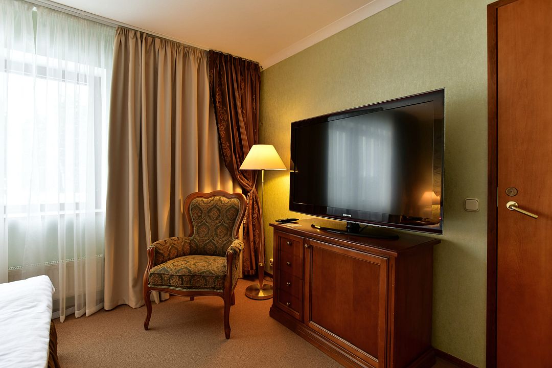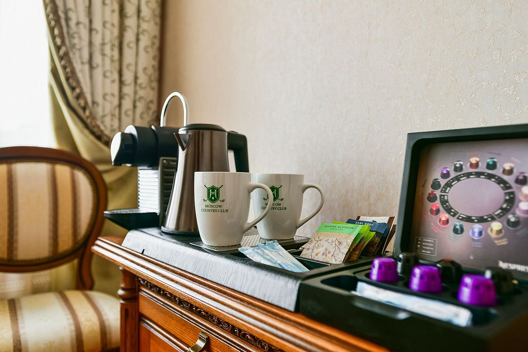 Номера отеля «Москоу Кантри Клаб» оформлены в теплых тонах и оснащены телевизором с плоским экраном и мини-баром. В ванных комнатах предоставляется фен, халаты и туалетно-косметические принадлежности.