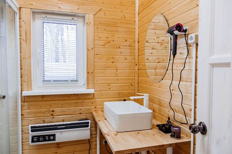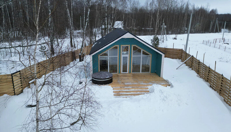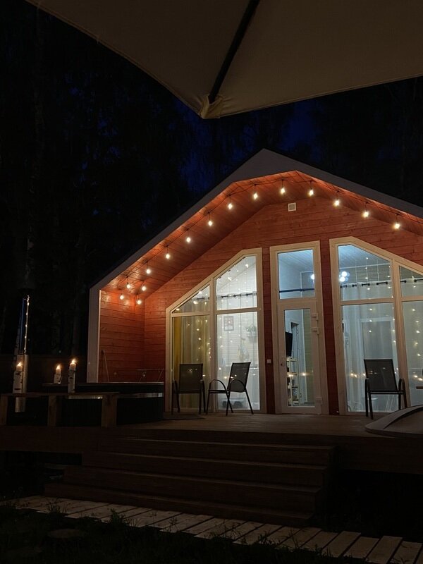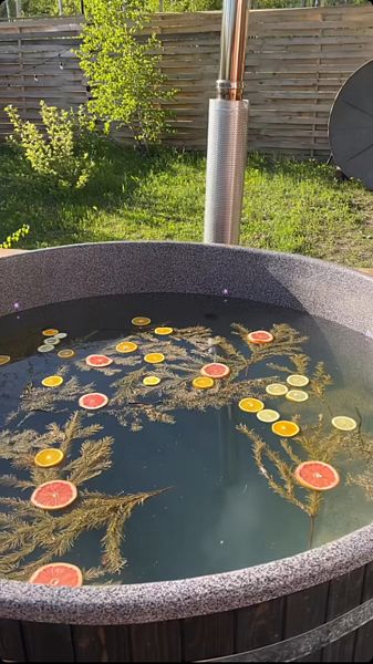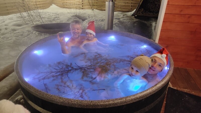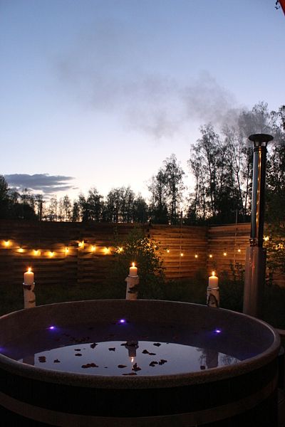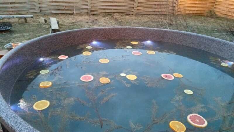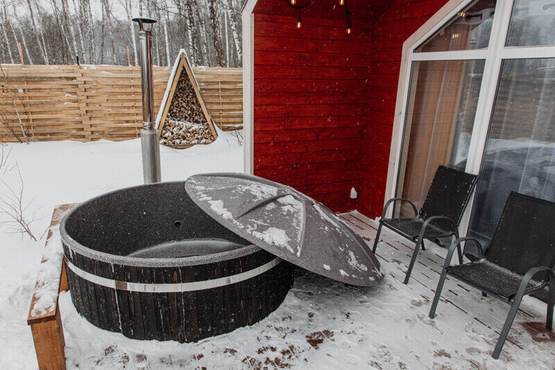 На территории каждого Barn-хауса расположена купель «Фурако». Температура воды в купели будет около 38-40°C.