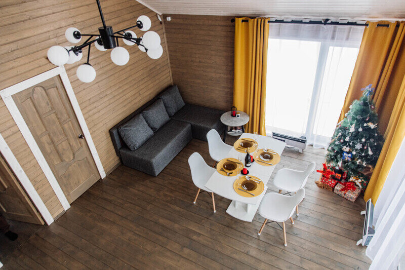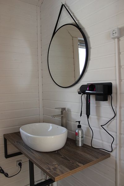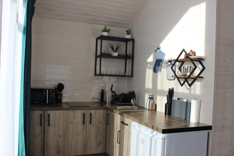 На территории глэмпинга находятся два уютных домика, полностью оборудованных для комфортного проживания. Каждый домик имеет свою уникальную атмосферу и стиль. Они оба предлагают незабываемый вид на окружающую природу и создают ощущение уединения и спокойствия. Гости могут выбрать домик, который больше всего соответствует их предпочтениям и настроению.