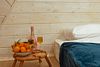 Размещение: Каждый домик рассчитан на 4 гостей. Наверху вас ждет комфортная спальня, а внизу, в просторной кухне-гостиной, предусмотрен удобный раскладной диван.