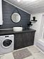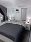 Отличительной особенностью этого дома являются темные, брутальные оттенки в интерьере, напоминающие берлогу. В доме имеется одна отдельная спальная комната с двухспальной кроватью и детской кроваткой. Антресоль с двухспальной кроватью. В гостиной есть угловой раскладной диван