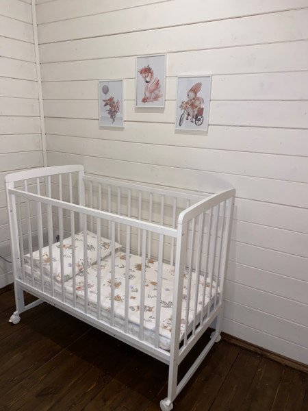 В доме имеются две отдельные спальные комнаты с двухспальными кроватями и детской кроваткой. В гостиной есть угловой раскладной диван.