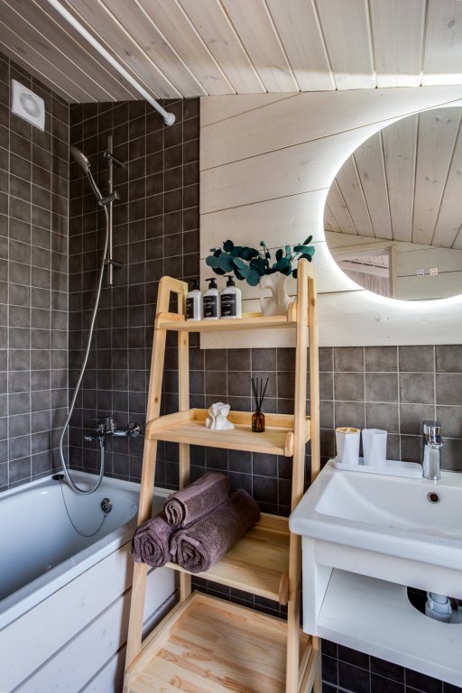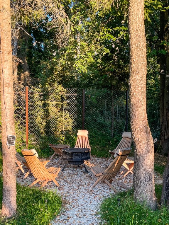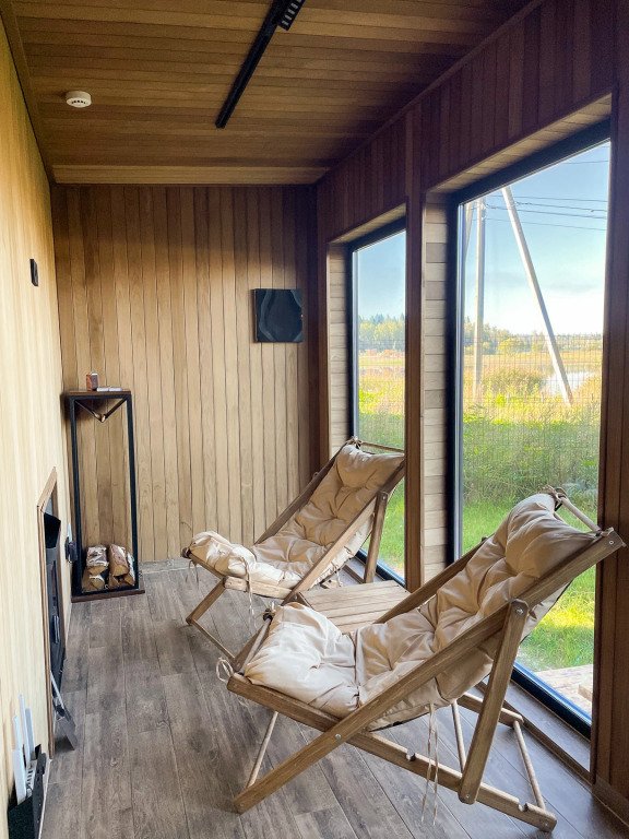 На территории располагается костровая зона с креслами, парковка на 2 автомобиля. На территории есть баня и банный чан на 6 человек — оплачивается отдельно.