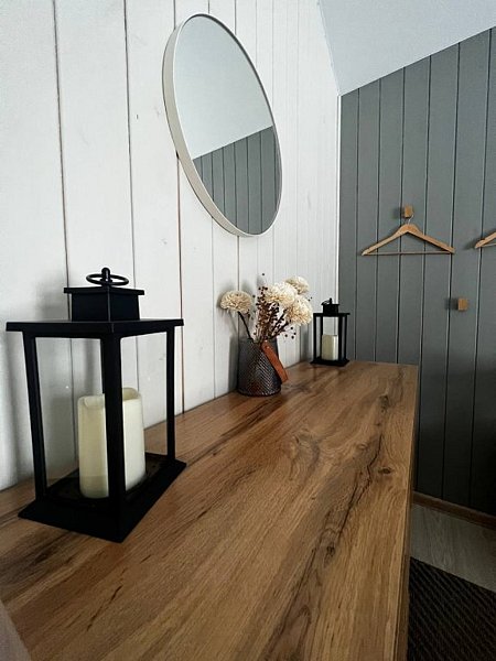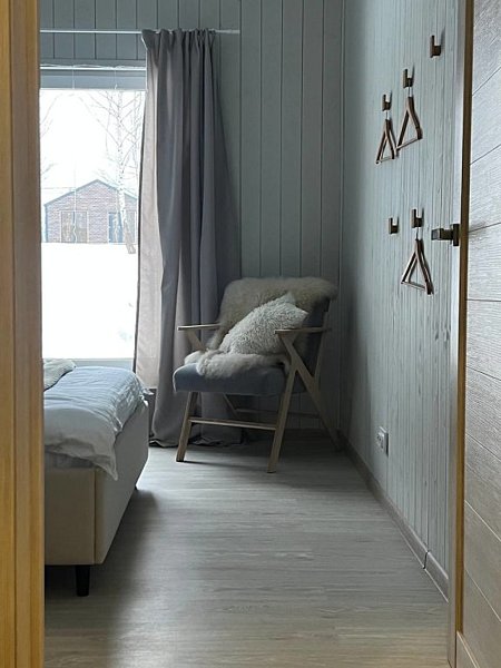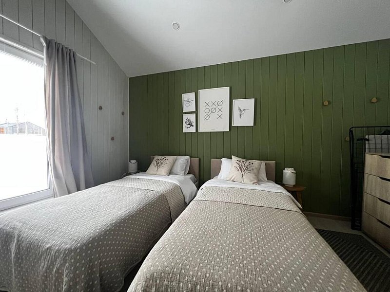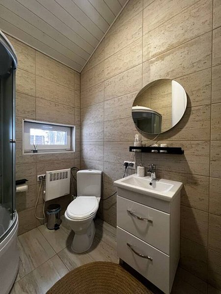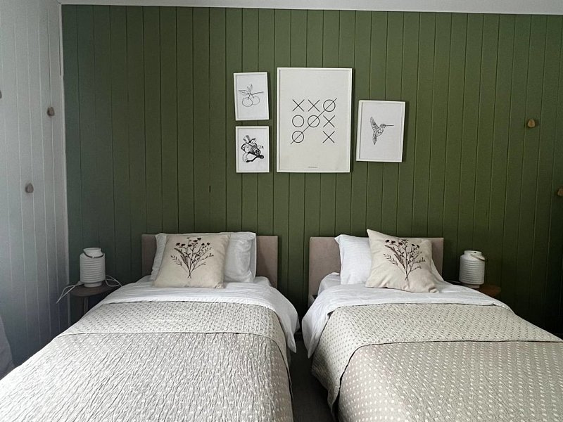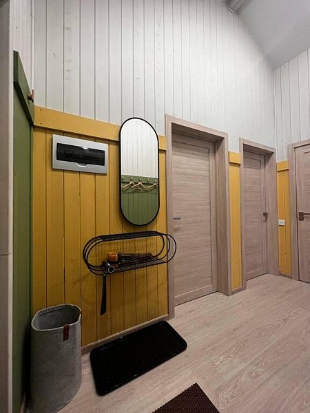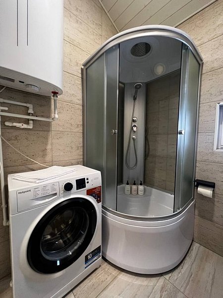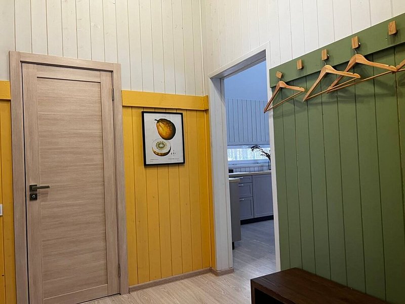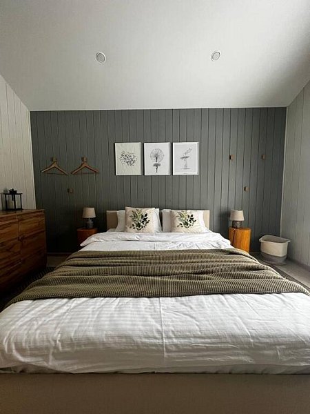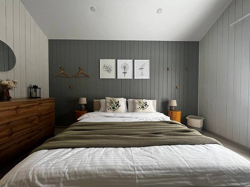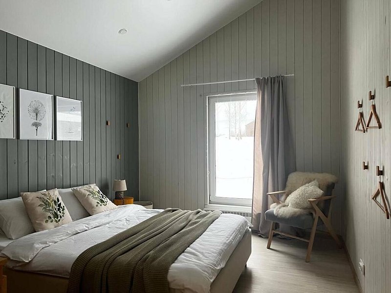 Дом оснащён современной мебелью и техникой, есть необходимое для комфортного отдыха: двуспальная кровать, 2 полутороспальные кровати, диван.