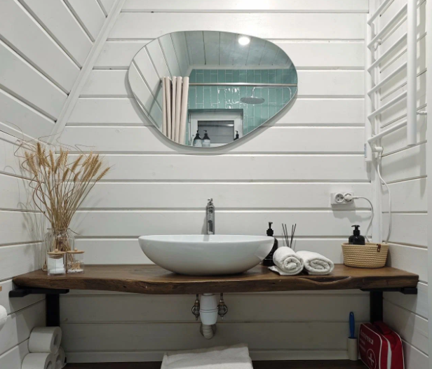 -комфортный санузел с пушистыми полотенцами, и гигиеническим принадлежностями и феном.