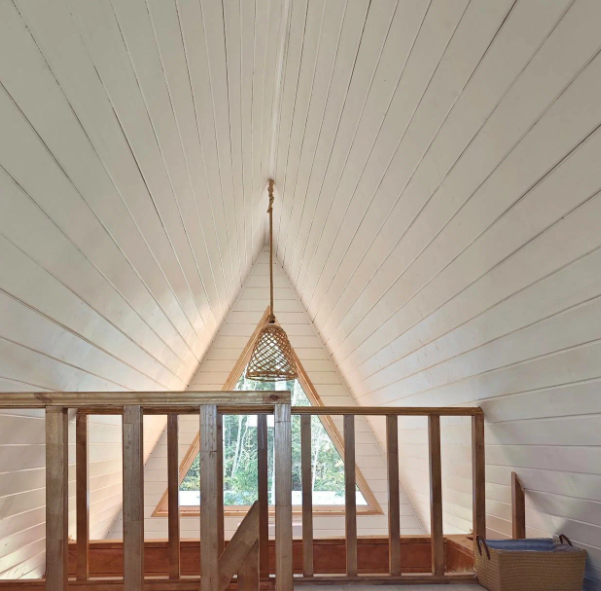 Комфортное размещение для 4-х человек: ортопедический матрас на втором этаже и раскладной двуспальный диван на первом.