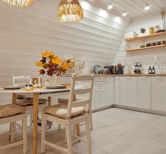 -кухня оборудованная техникой и посудой для приготовления еды;