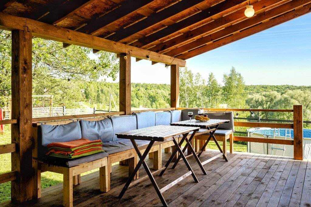 В коттедже есть: 5 спален, 3 санузла, зал, переходящий в кухню-столовую, стол длинной 3 метра. Для удобства гостей есть постельное бельё, полотенца, гигиенические принадлежности, посуда, мангал с решётками и шампурами, казан с печью на 16 литров, TV с яндекс станцией, питьевая вода из кранов, также удобства для маленьких детей, детская площадка на территории, небольшой батут. Летом каркасный бассейн. Осуществляется уборка перед каждым заездом. Возможно размещение до 20 человек на безалкогольные мероприятия, на мероприятия с алкоголем до 16 гостей. На участке находится квадробаня — топка входит в стоимость. Для мангала предоставляются угли. Рыбалка в 50 метрах бесплатная, в 1 км платная.