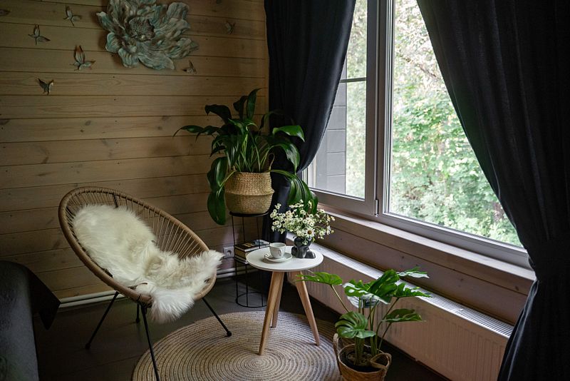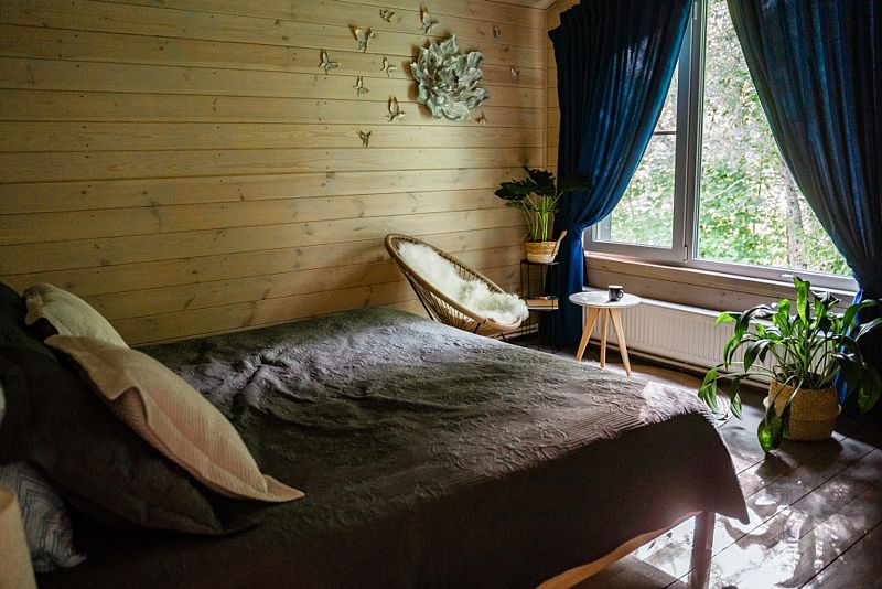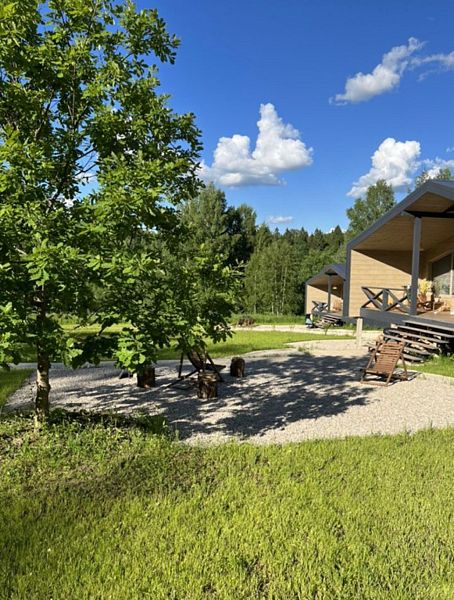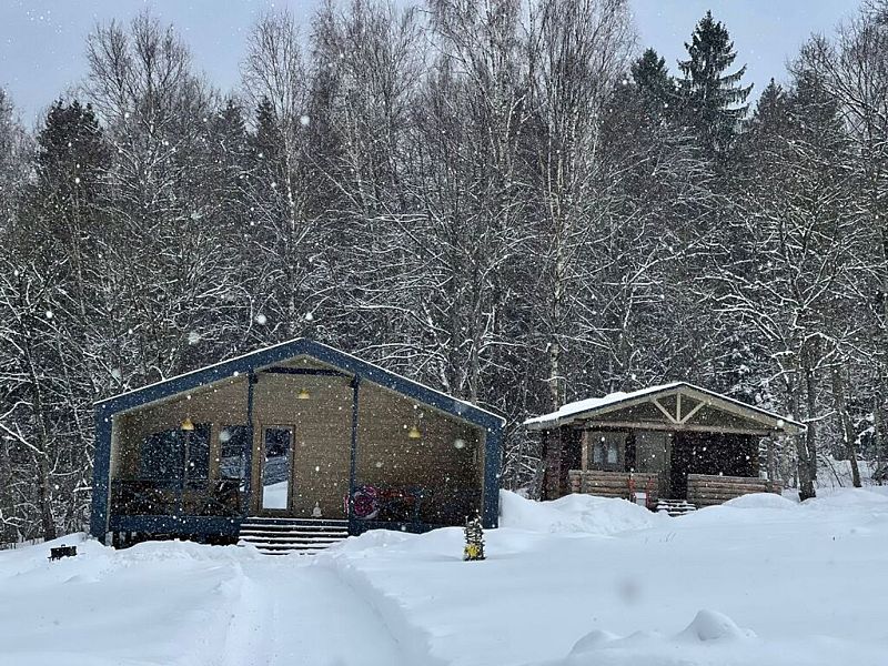 Частный дом сделан в стиле «бар-хаус». Дом с газовым отоплением подходит для круглогодичного проживания, батареи есть в каждой комнате с возможностью регулирования. Также есть генератор на случай отключения света. На территории работает Wi-Fi — есть возможность удалённо работать. Территория дома — более 50 соток с выходом к реке: гости могут рыбачить, ходить в лес. Окна дома выходят на лес. Рядом есть территория для прогулок с детьми и питомцами, зимой у дома есть горка, предоставляются ватрушки для катания, также дорожки для бега и занятия спортом. Для семей с детьми предоставляется детская кроватка и детский стульчик. Возможно размещение с собаками. Для гостей работает баня на дровах за дополнительную плату.