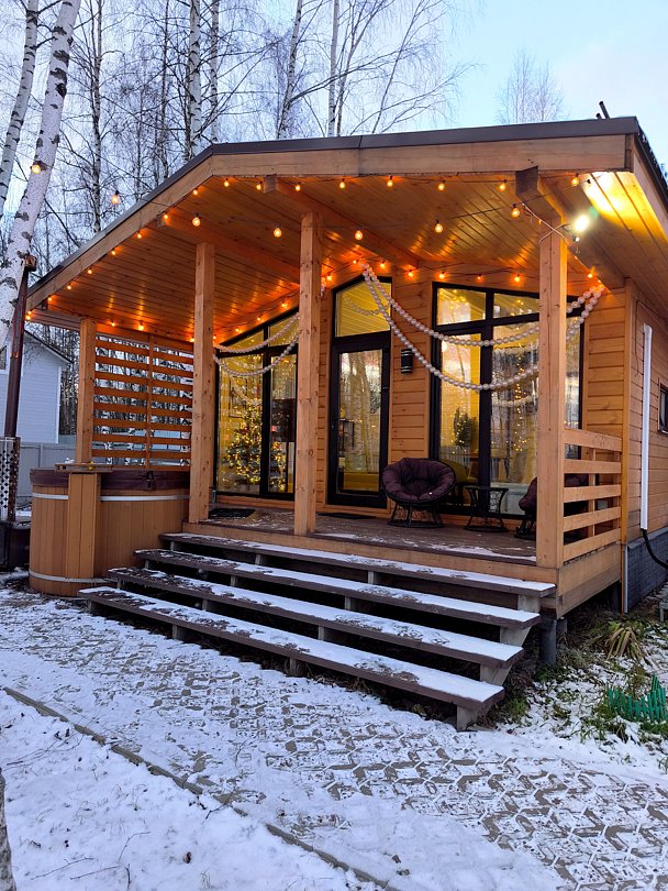 Дом расположен в коттеджном поселке Континентъ, дом 79. Пользование баней и купелью, а также проживание с питомцами за дополнительную плату. Купель требует предварительного бронирования.
