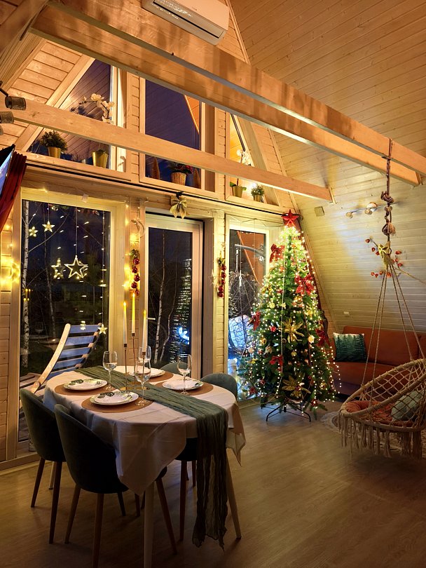70 м2 · 2-х местный а-фрейм + 4 доп. места