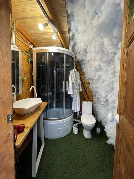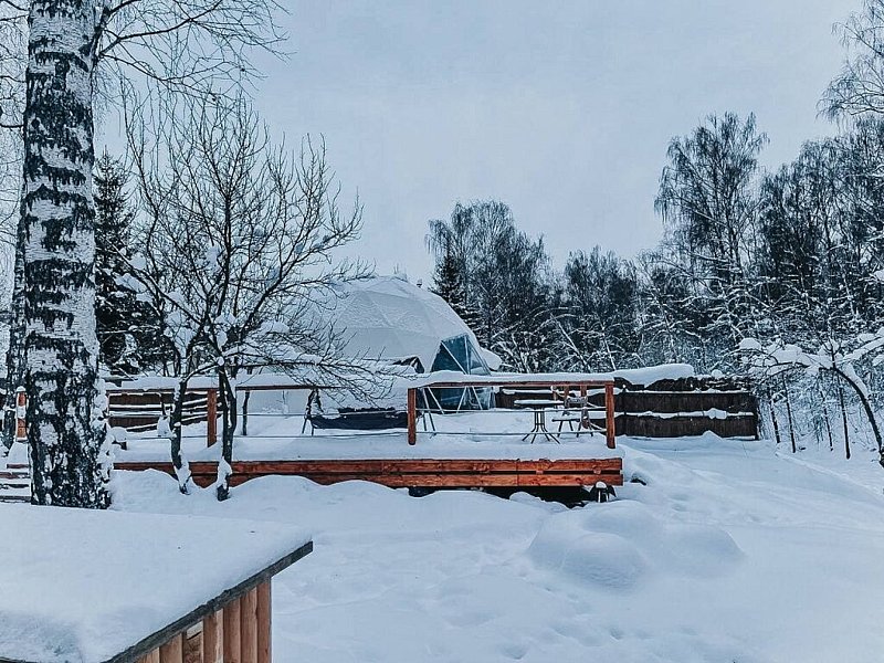 Современная полусфера с дизайнерским ремонтом, со всеми удобствами, с видом на лес, с террасой, где можно как устраивать вечеринки, так и романтический ужин.